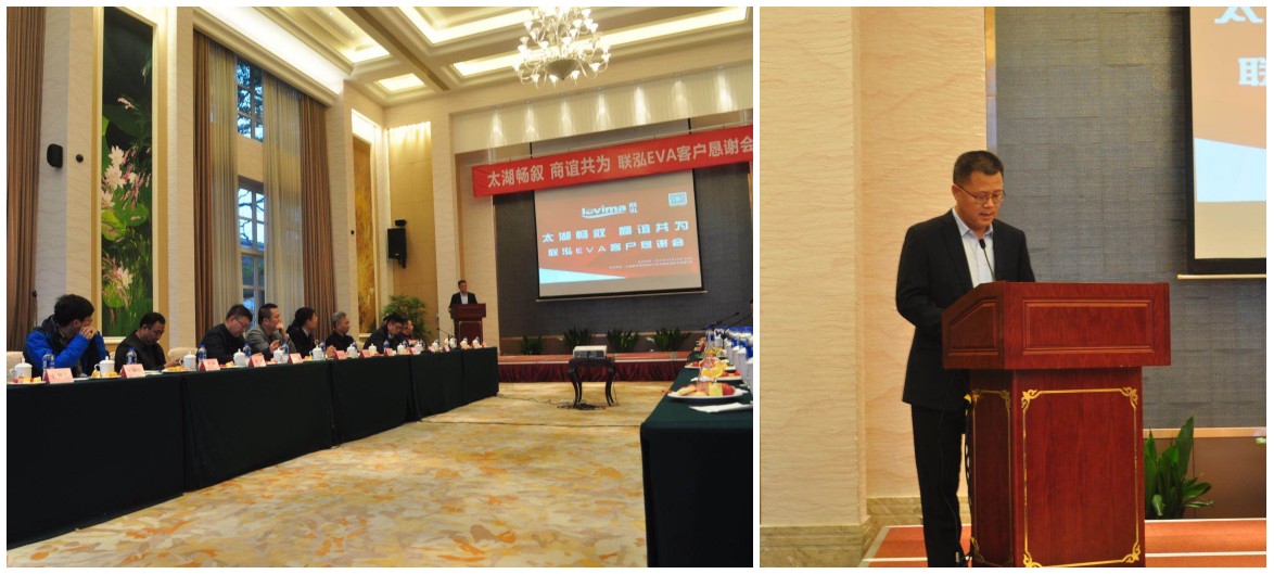 会上,,,,,pa电子游戏新质料助理总裁、销售公司总司理李军致接待辞,,,,,简要叙述了pa电子游戏新质料现在生长现状和2017年主要业绩,,,,,就客户体贴的pa电子游戏2018年EVA产品生长偏向及销售治理等内容作了重点先容。。。。 。。。。