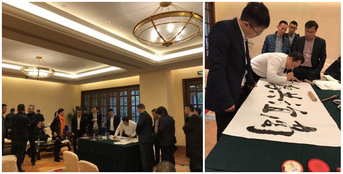 在茶歇的自由交流环节,,,,,特邀而来的pa电子游戏新质料品牌公关部总司理张瑞“即兴挥毫诗藏头,,,,,瞬间泼墨书图画”,,,,,献上了一道道精彩的书法“大餐”,,,,,引得嘉宾驻足围观、啧啧赞美,,,,,争相与墨宝合影。。。。 。。。。