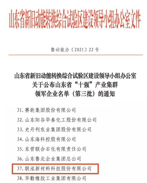 克日,,,,,《山东省新旧动能转换综合试验区建设向导小组办公室关于宣布山东省“十强”工业集群领军企业名单(第三批)的通知》(鲁动能办[2021]22号)宣布,,,,,pa电子游戏新科入库”十强“工业集群领军企业。。。。。凭证山东省《“十强”工业集群领军企业培育支持步伐》有关要求,,,,,关于入库企业,,,,,山东省各级政府将重点培育支持。。。。。
