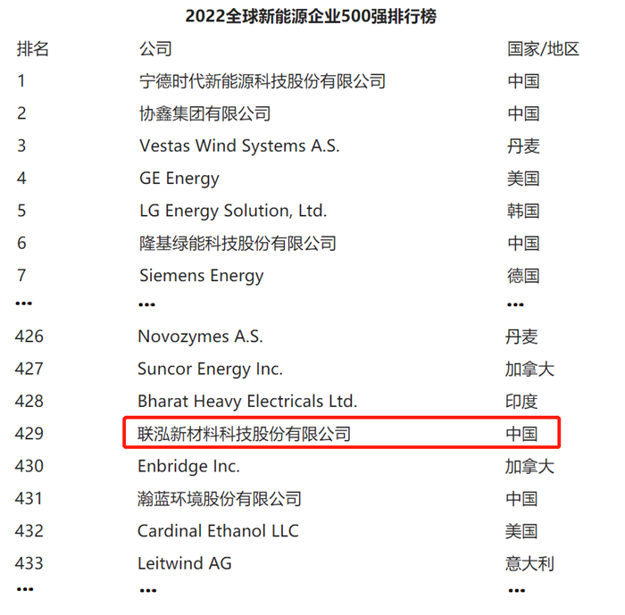 克日,,,,,,,“2022全球新能源企业500强榜单”重磅宣布,,,,,,,宁德时代、协鑫集团、隆基绿能、中国能建等4家中国企业跻身榜单前十,,,,,,,pa电子游戏(简称:pa电子游戏新科)依附在光伏质料、锂电质料等新能源领域的亮眼效果荣耀上榜。。。。。。