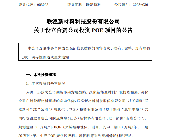 8ÔÂ23ÈÕ£¬£¬£¬£¬£¬£¬paµç×ÓÓÎÏ·Óë»ÝÉú£¨Öйú£©Í¶×ÊÓÐÏÞ¹«Ë¾ÅäºÏͶ×ÊÉèÁ¢ÁËpaµç×ÓÓÎÏ·»ÝÉú£¨½ËÕ£©ÐÂÖÊÁÏÓÐÏÞ¹«Ë¾¡£¡£¡£¡£¡£¡£ÆäÖУ¬£¬£¬£¬£¬£¬paµç×ÓÓÎϷпƳö×Ê4.55ÒÚÔª£¬£¬£¬£¬£¬£¬Õ¼ºÏ×ʹ«Ë¾×¢²á×ÊÔ´µÄ65%£»£»£»£»£»»ÝÉúÖÐͶ³ö×Ê2.45ÒÚÔª£¬£¬£¬£¬£¬£¬Õ¼ºÏ×ʹ«Ë¾×¢²á×ÊÔ´µÄ35%¡£¡£¡£¡£¡£¡£paµç×ÓÓÎÏ·»ÝÉúÐÂÖÊÁÏÖ÷Òª´ÓÊÂPOE£¨¾ÛÏ©Ìþµ¯ÐÔÌ壩µÈ¸ß¶ËÏ©ÌþÖÊÁÏÓªÒµ£¬£¬£¬£¬£¬£¬ÍýÏ뽨Éè30Íò¶Ö/ÄêPOEÏîÄ¿£¬£¬£¬£¬£¬£¬ÆäÖÐÒ»ÆÚ10Íò¶Ö/Äê¡¢¶þÆÚ20Íò¶Ö/Ä꣬£¬£¬£¬£¬£¬Éú²úPOE¹â·ü½ºÄ¤ÁÏ¡¢ÔöÈÍÁϵȸ߶˲úÆ·¡£¡£¡£¡£¡£¡£
