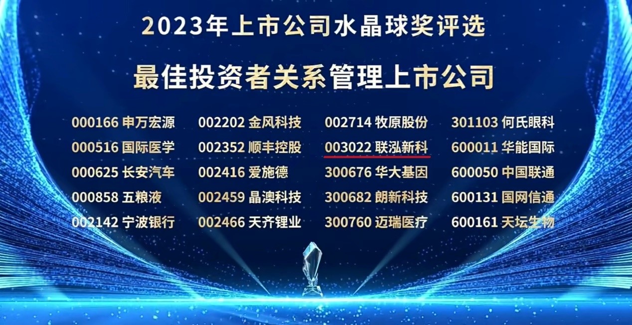 水晶球奖评选规模包括A股和港股上市公司,,,,,10位上市公司向导人获评“2023年度最佳总裁/总司理/CEO”,,,,,40家上市公司获评“2023年最佳投资者关系治理上市公司”。。。。。。。。未来,,,,,pa电子游戏新科将继续提升公司治理和投资者关系治理水平,,,,,起劲为投资者创立更大价值。。。。。。。。