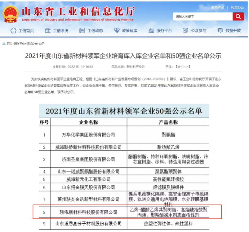 2021年山东省新质料领军企业50强公示 pa电子游戏新科上榜
